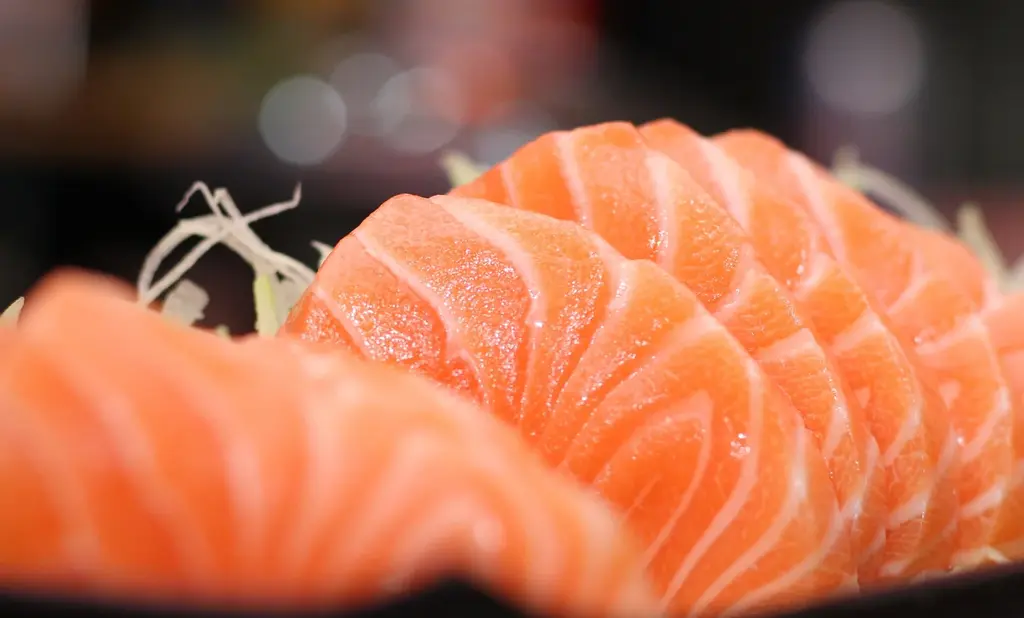 Sashimi este pește crud tăiat în felii fine și subțiri servit cu wasabi, ghimbir și sos de soia.